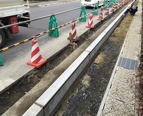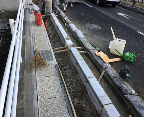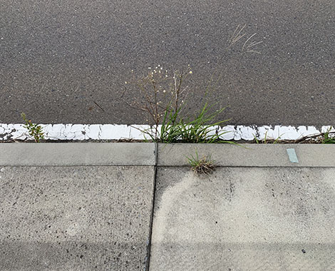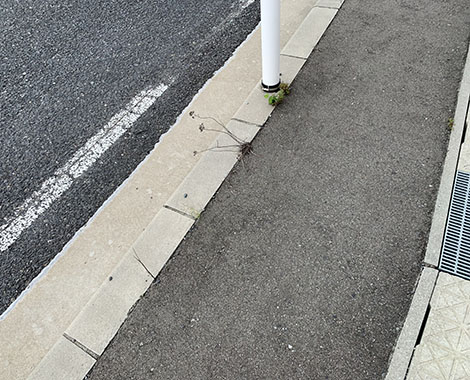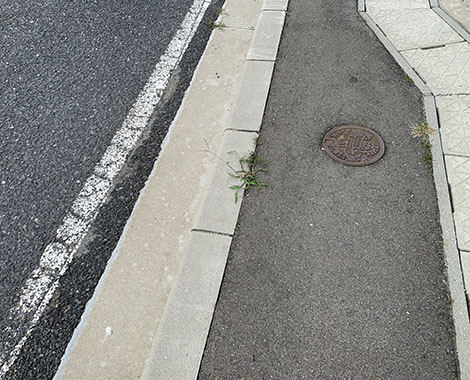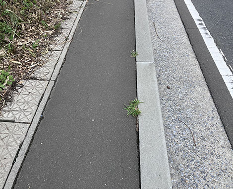 今回は防草ブロックを使用していない反対側の歩道も写してみました。