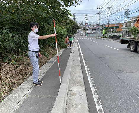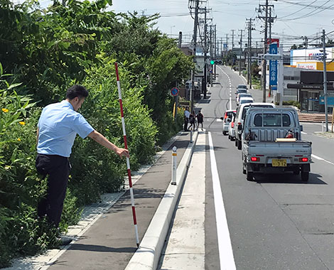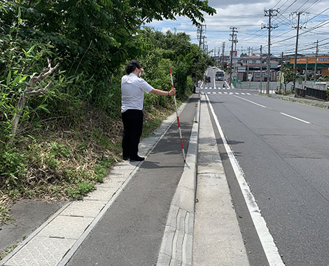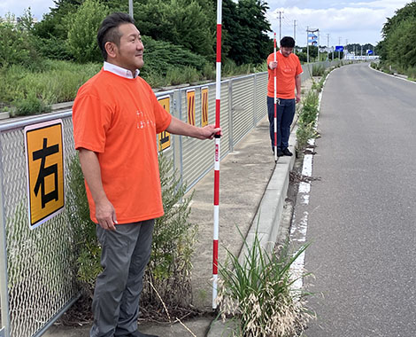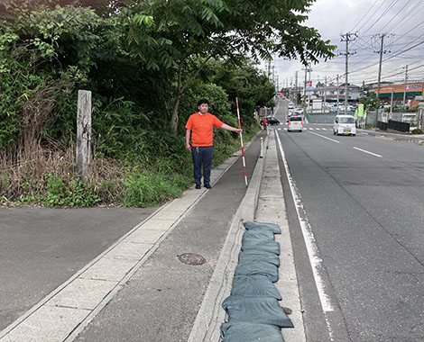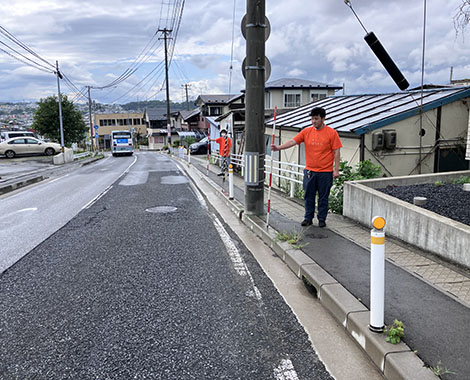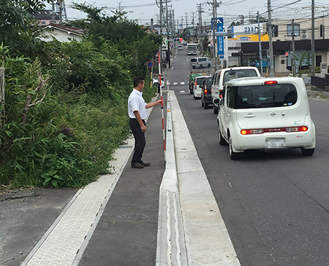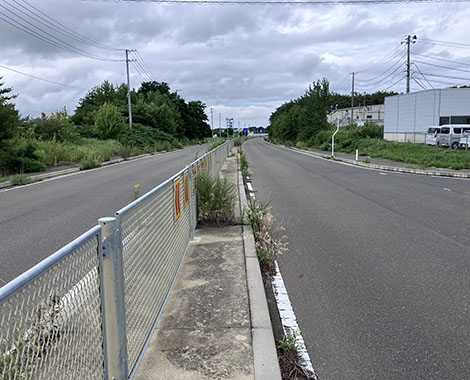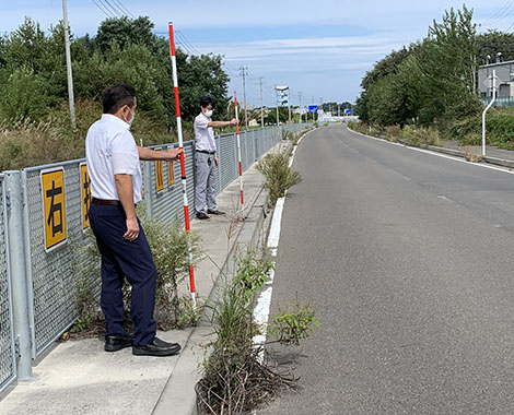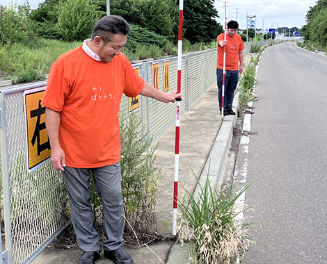 防草ブロックの効果確認には最適な現場かもしれません。(三上)