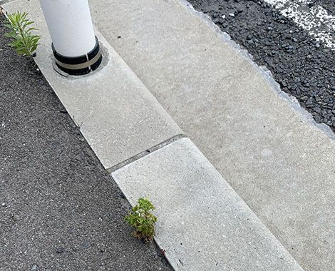 防草ブロック付近の伸縮目地から雑草が…